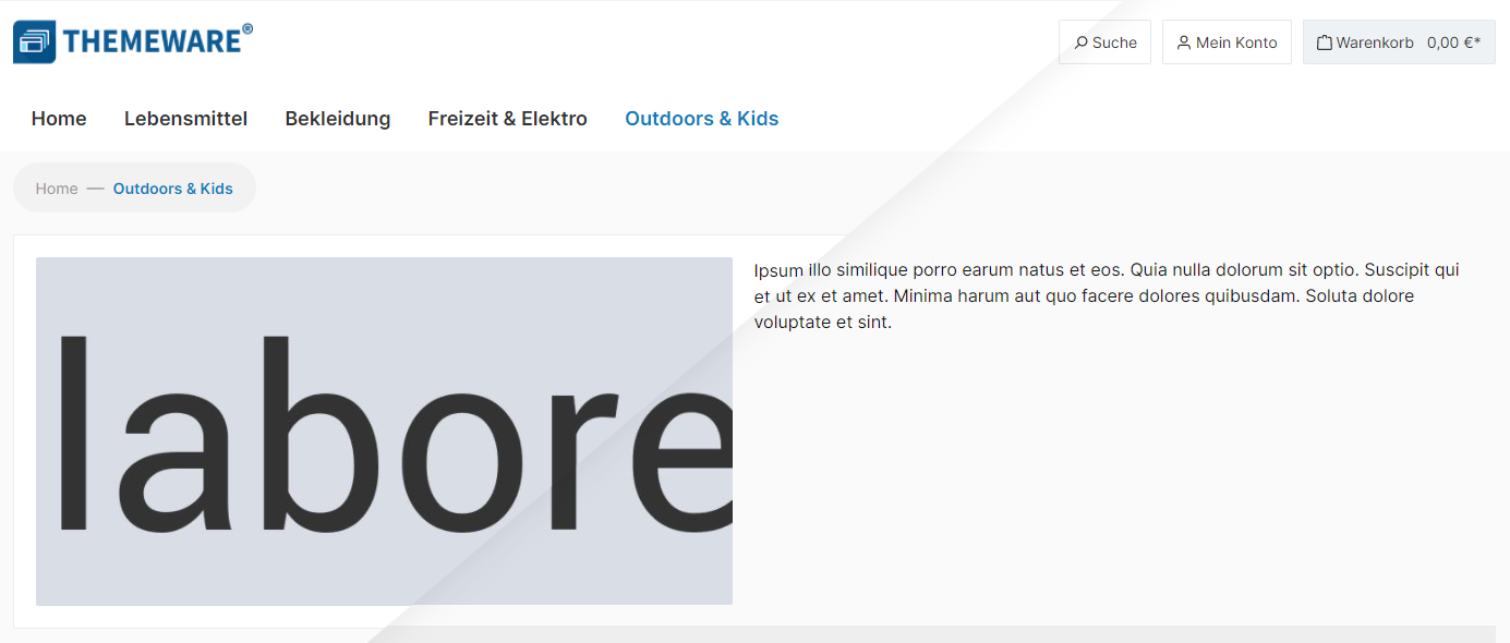 You can activate or deactivate the CMS styling of ThemeWare® for different page types. In addition, you can customise each CMS block with special CSS classes.
